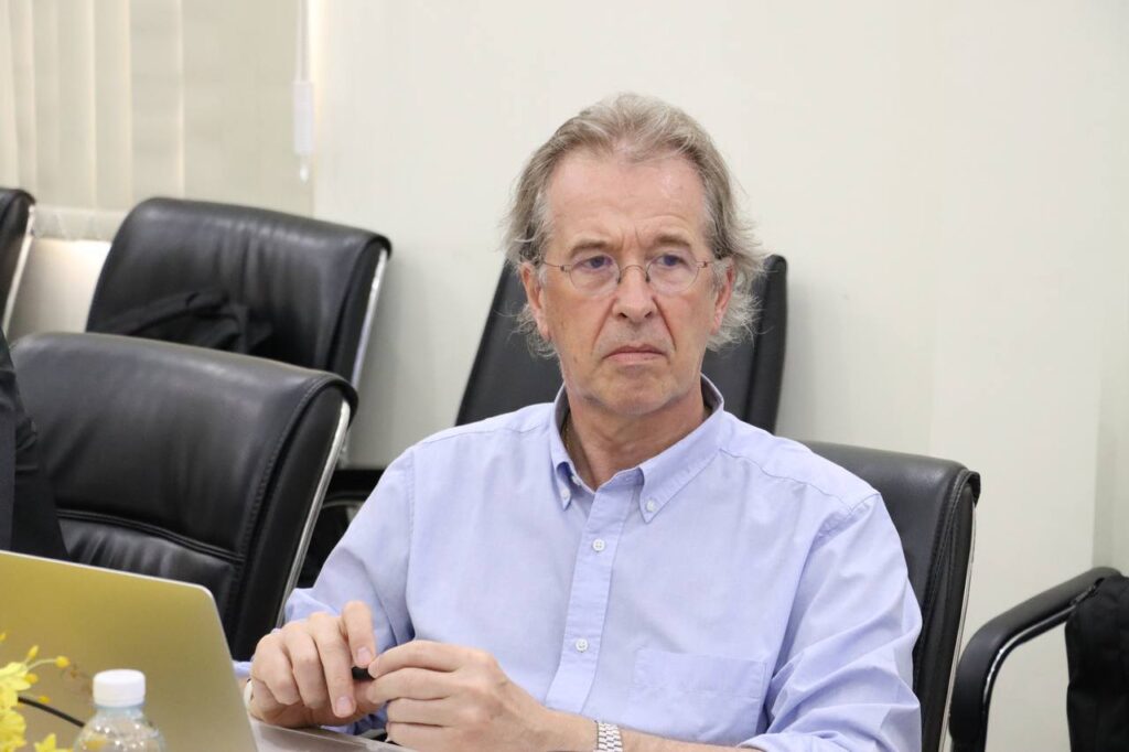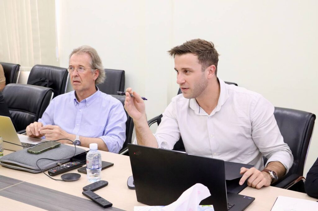 នារសៀលថ្ងៃសុក្រ ២រោច ខែមាឃ ឆ្នាំរោង ឆស័ក ព.ស ២៥៦៨ ត្រូវនឹងថ្ងៃទី១៤ ខែកុម្ភៈ ឆ្នាំ ២០២៥ ឯកឧត្ដម ហ៊ែល តូនី អនុប្រធានក្តាប់រួម តំណាងដ៏ខ្ពង់ខ្ពស់ឯកឧត្តមរដ្ឋមន្ត្រី ថោ ជេដ្ឋា ប្រធានអាជ្ញាធរទន្លេសាប រួមជាមួយ ឯកឧត្ដម ជា សុខនី អគ្គលេខាធិការរង អាជ្ញាធរទន្លេសាប និងលោកបណ្ឌិត អ៊ុក សុវណ្ណារ៉ា ជំនួយការផ្ទាល់ឯកឧត្ដមអនុប្រធានក្តាប់រួមអាជ្ញាធរទន្លេសាប បានដឹកនាំមន្ត្រីបច្ចេកទេសអាជ្ញាធរទន្លេសាប ជួបប្រជុំពិភាក្សាជាមួយក្រុមជំនាញការដៃគូអភិវឌ្ឍន៍ លោកបណ្ឌិត Morgan MARTEAU ប្រធានក្រុមប្រឹក្សាជួយកិច្ចការធនាគារអភិវឌ្ឍន៍អាស៊ី (ADB) និងលោកបណ្ឌិត Phillipe GOURBESVILLE ក្រុមការងារស្ថាប័នជំនួយនៃវិទ្យាស្ថានធនធានទឹក និងវារីសាស្ត្រ (Institute of Water Resources and Hydropower) ប្រទេសចិន រួមជាមួយ លោក ថ្លាង ភក្ត្រា ទទួលបន្ទុកគម្រោងទីភ្នាក់ងារបារាំងសម្រាប់អភិវឌ្ឍន៍ (AFD) និងសហការី ។
