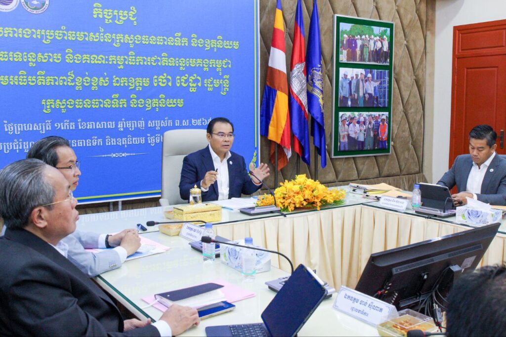 នៅទីស្តីការក្រសួងធនធានទឹក និងឧតុនិយម នាថ្ងៃព្រហស្បតិ៍ ១កើត ខែអាសាឍ ឆ្នាំម្សាញ់ សប្តស័ក ពុទ្ធសករាជ ២៥៦៩ ត្រូវនឹងថ្ងៃទី២៦ ខែមិថុនា ឆ្នាំ២០២៥ មានការរៀបចំកិច្ចប្រជុំបូកសរុបប្រចាំឆមាសទី១ ឆ្នាំ២០២៥ របស់ក្រសួងធនធានទឹក និងឧតុនិយម គណៈកម្មាធិការជាតិទន្លេមេគង្គកម្ពុជា និងអាជ្ញាធរទន្លេសាប ក្រោមអធិបតីភាពដ៏ខ្ពង់ខ្ពស់ឯកឧត្តម ថោ ជេដ្ឋា រដ្ឋមន្ត្រីក្រសួងធនធានទឹក និងឧតុនិយម។ កិច្ចប្រជុំនេះ បានអញ្ជើញចូលរួមពី ឯកឧត្តមអនុប្រធានអាជ្ញាធរទន្លេសាប ឯកឧត្តម អគ្គលេខាធិការ អគ្គលេខាធិការរង និងលោកប្រធាននាយកដ្ឋាន នៃអគ្គលេខាធិការដ្ឋាន អាជ្ញាធរទន្លេសាប។