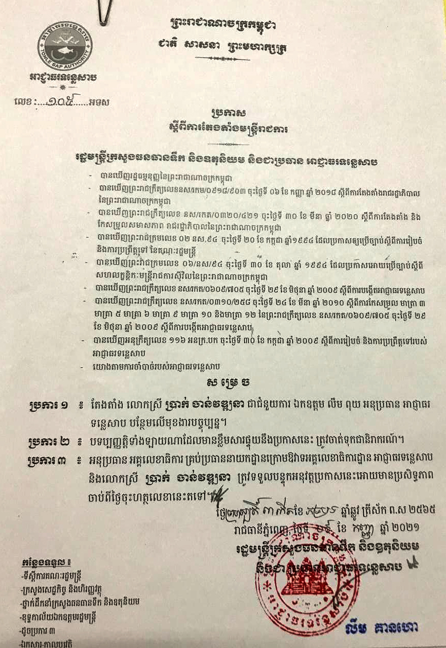 ប្រកាស តែងតាំងលោកស្រី បា្រក់ ចាន់វឌ្ឍនា ជាជំនួយការ ឯកឧត្តម លឹម ពុយ១០៥09-Sep-21pdf-icon