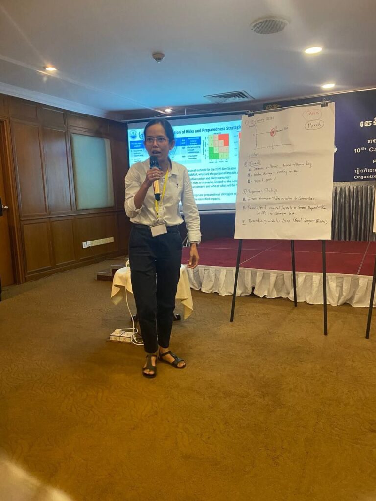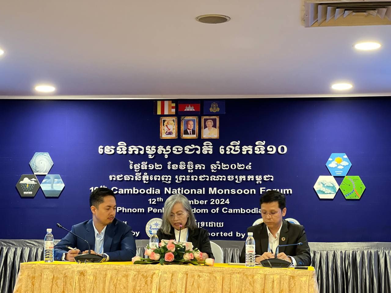 នៅសណ្ឋាគារសាន់វេ រាជធានីភ្នំពេញ : នាថ្ងៃអង្គារ ១២ កើត ខែកត្តិក ឆ្នាំរោង ឆស័ក ពុទ្ធសករាជ ២៥៦៨ ត្រូវនឹងថ្ងៃទី១២ ខែវិច្ឆិកា ឆ្នាំ២០២៤ លោកស្រី ប្រាក់ ចាន់វឌ្ឍនា អនុប្រធាននាយកដ្ឋានធនធានធម្មជាតិ បានចូលរួមវេទិកាមូសុងជាតិលើកទី១០ សហការរៀបចំ និងសម្របសម្រួលដោយក្រសួងធនធានទឹក និងឧតុនិយម គាំទ្រដោយអង្គការឧតុនិយមពិភពលោក WMO និង RIMES ក្រោមគម្រោងប្រព័ន្ធព្រមានអំពីហានិភ័យអាកាសធាតុ CREWS ក្រោមអធិបតីភាពលោកជំទាវ សិទ្ធ វណ្ណារ៉េត ទីប្រឹក្សាក្រសួងធនធានទឹក និងឧតុនិយម និងជាតំណាងអចិន្ត្រៃយ៍ នៃព្រះរាជាណាចក្រកម្ពុជាសម្រាប់អង្គការឧតុនិយមពិភពលោក ដែលមានសមាសភាពចូលរួមសរុបប្រមាណ ៤៩ នាក់ មកពីតំណាងក្រសួងស្ថាប័នពាក់ព័ន្ធចំនួន ១៤ ក្នុងរដ្ឋាភិបាលកម្ពុជារួមមាន ក្រសួងកសិកម្ម រុក្ខាប្រមាញ់និងនេសាទ ក្រសួងបរិស្ថាន ក្រសួងសុខាភិបាល ក្រសួងអប់រំ យុវជន និងកីឡា ក្រសួងអភិវឌ្ឍន៍ជនបទ ក្រសួងកិច្ចការនារី អាជ្ញាធរទន្លេសាប (TSA) គណៈកម្មាធិការជាតិគ្រប់គ្រងគ្រោះមហន្តរាយ (NCDM) និងអាជ្ញាធរព្រមទាំងគ្រឹះស្ថានអប់រំ៖ សាកលវិទ្យាល័យភូមិន្ទភ្នំពេញ វិទ្យាស្ថានបច្ចេកវិទ្យាកម្ពុជា និងសាកលវិទ្យាល័យភូមិន្ទកសិកម្ម និងដៃគូរអភិវឌ្ឍន៍៖ អង្គការឧតុនិយមពិភពលោក (WMO), The Regional Integrated Multi-Hazard Early Warning System (RIMES), World Food Programme (WFP), Food and Agriculture Organization of the United Nations (FAO), United Nations Economic and Social Commission for Asia and the Pacific (UNESCAP), The United Nations Office for Disaster Risk Reduction (UNDRR), World Vision, Cambodia Development Resource Institute (CDRI), International Rice Research Institute (IRRI), People in Need (PIN), Cambodia Agricultural Research and Development Institute (CARDI), and CWS។