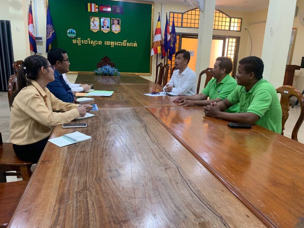 ១. ជួបពិភាក្សា​ជាមួយ​ខាង​មន្ទីរ​បរិស្ថាន​ខេត្តកំពង់ឆ្នាំង និង​ខេត្តពោធិ៍សាត់ ដើម្បី​ពិភាក្សា និង​ស្នើសុំ​ទិន្នន័យ​ប្រភេទ​ជីវចម្រុះ​នៅក្នុង​តំបន់​សហគមន៍​នេសាទ​ស្រី​ចឹក និង​តំបន់ការពារធម្មជាតិ​ដទៃទៀត​នៅក្នុង​ខេត្ត​ទាំងពីរ​ជាប់​បឹង​ទន្លេសាប​