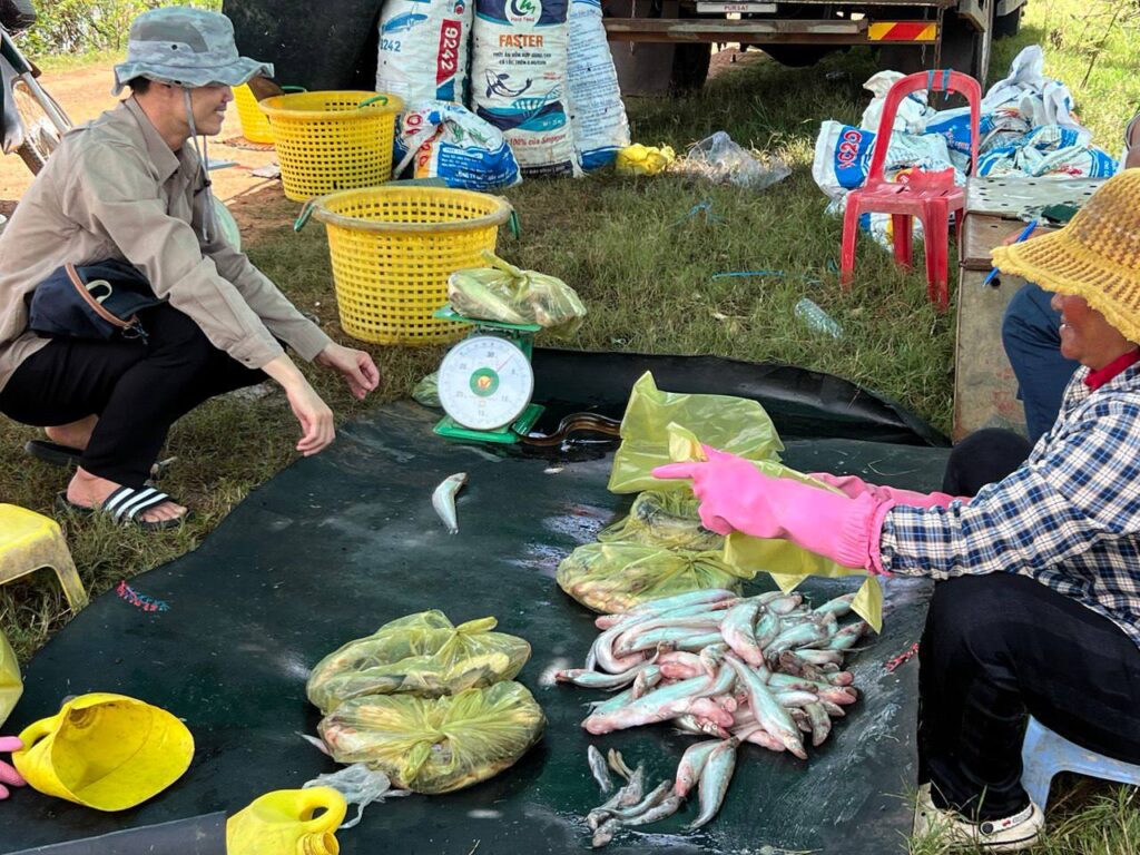 ៣. ប្រមូល​សំណាក​ត្រី និង​ធនធាន​ក្រៅពី​ត្រី​, កត់ត្រា​ទីតាំង​នេសាទ (X,Y), វាស់​ជម្រៅ​ទឹក​នៅតាម​តំបន់​នេសាទ​នីមួយៗ និង​ពិនិត្យ​លើ​លំនៅដ្ឋាន​ធនធាន​ជលផល