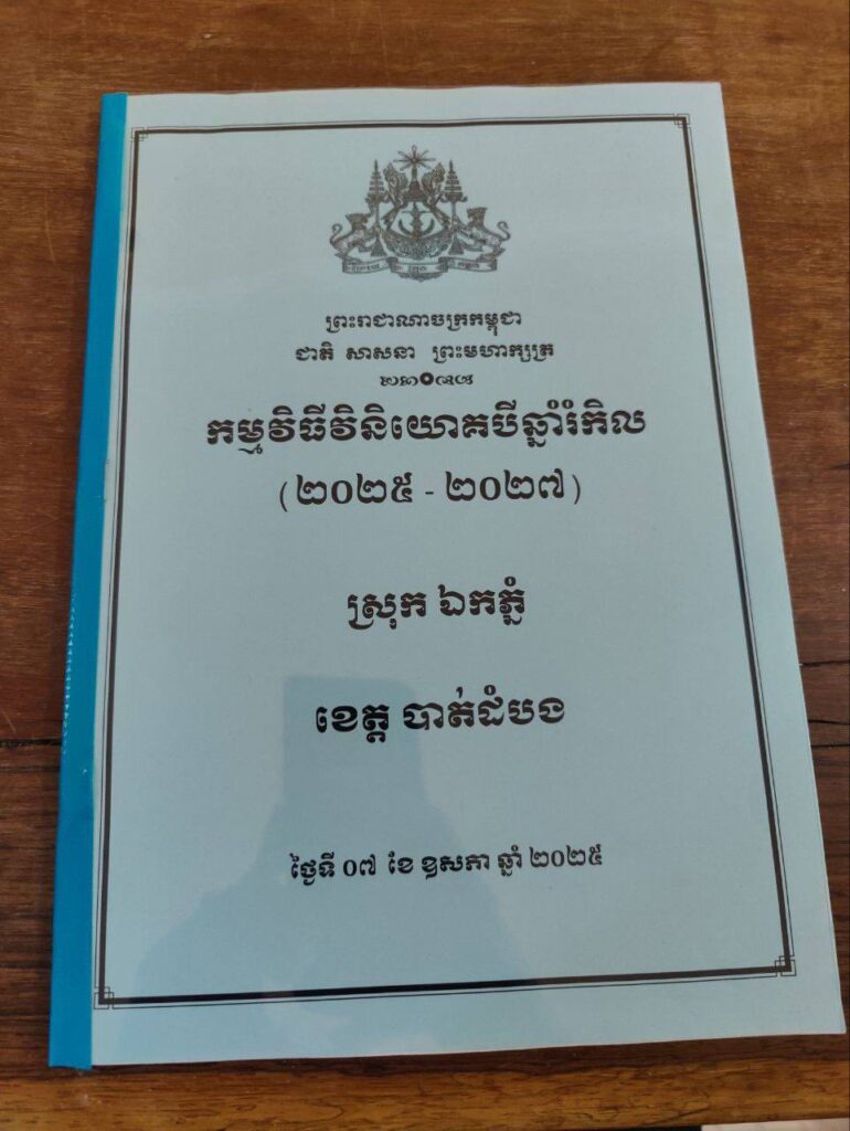 ​នា​ថ្ងៃ​អង្គារ ១៣​កើត ខែអាសាឍ ឆ្នាំម្សាញ់ សប្តស័ក ពុទ្ធសករាជ ២៥៦៩ ត្រូវ​នឹង​ថ្ងៃទី​០៨ ខែកក្កដា ឆ្នាំ​២០២៥ លោក អ៊ុក បញ្ញា​រិ​ទ្ធ អនុប្រធាន​នាយដ្ឋាន​រដ្ឋបាល ផែនការ និង​សហប្រតិបត្តិការ បាន​ដឹកនាំ​ក្រុមការងារ​ការិយាល័យ ផែនការ និង​សហប្រតិបត្តិការ បាន​ចុះ​អនុវត្តន៍​គម្រោង​សកម្មភាព​ការងារ​តាមដាន វាយតម្លៃ និង​ចងក្រង​គម្រោង​ដែល​មាននៅ​តំបន់​ទន្លេសាប និង​តំបន់​ពាក់ព័ន្ធ ស្ថិតនៅក្នុង​ស្រុក​ឯក​ភ្នំ ខេត្តបាត់ដំបង​។ ដំណើរ​ការចុះអនុវត្ត​ន៍​សកម្មភាព​ក្រុមការងារ​បាន​ជួបពិភាក្សា​ជាមួយ​៖