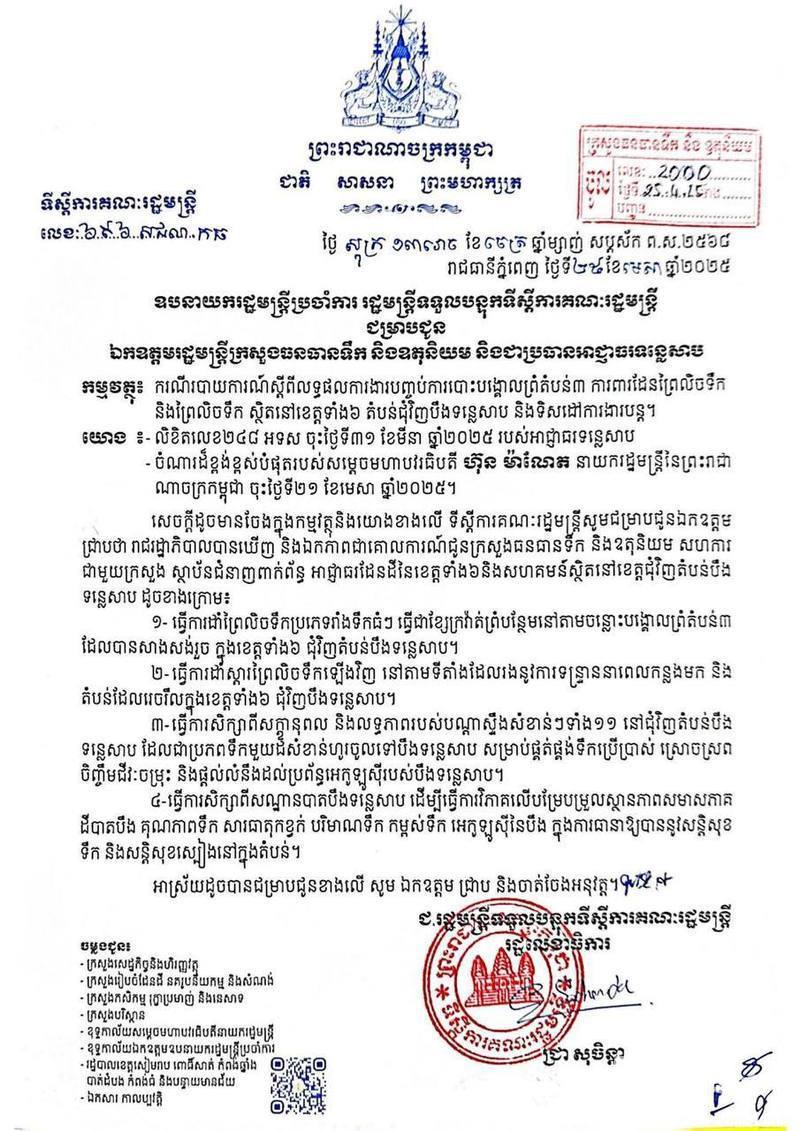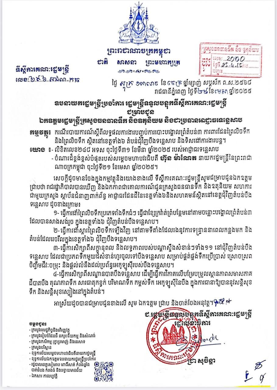 សជណ អំពីការចុះបញ្ជីដីតំបន់ទន្លេសាបស្ថិតក្នុងភូមិសាស្រ្តខេត្តកំពង់ឆ្នាំង ពោធិ៍សាត់ បាត់ដំបង កំពងធំ បន្ទាយមានជ័យ និងខេត្តសៀមរាប