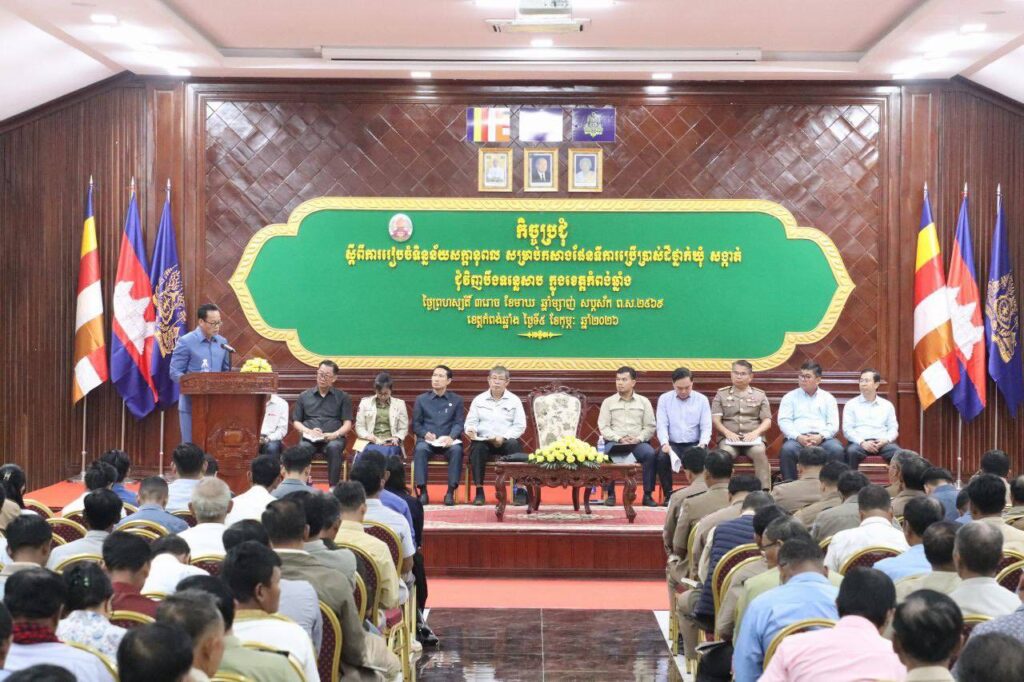 ​នា​ព្រឹក​ថ្ងៃ​ព្រ​ហ​ស្ប​ត្តិ៍ ៣​រោច ខែមាឃ ឆ្នាំម្សាញ់ សប្តស័ក ពុទ្ធសករាជ ២៥៦៨ ត្រូវ​នឹង​ថ្ងៃទី​៥ ខែកុម្ភៈ ឆ្នាំ​២០២៦ ឯកឧត្តម ខូវ មាស អគ្គលេខាធិការរង អាជ្ញាធរ​ទន្លេសាប និង​មន្ត្រី​ក្រុមការងារ បាន​ចូលរួម​កិច្ចប្រជុំ ស្តីពី ការរៀបចំ​ទិន្នន័យ​សក្កា​នុព​ល​សម្រាប់​កសាង​ផែនទី ការប្រើប្រាស់​ដី​ថ្នាក់ឃុំ សង្កាត់ នៅ​តំបន់​ជុំវិញ​បឹង​ទន្លេសាប ក្នុង​ខេត្តកំពង់ឆ្នាំង ដឹកនាំ​ដោយ ឯកឧត្តម ស្រ៊ុន ដា​រិ​ទ្ធិ រដ្ឋលេខាធិការ ក្រសួង​ដែនដី នគរូបនីយកម្ម និង​សំណង់ និង​ជា​ប្រធាន​ក្រុមការងារ​ប្រតិបត្តិ​ប្រចាំខេត្ត​កំពង់ឆ្នាំង​។​