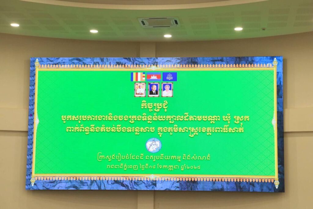 សូមបញ្ជាក់ជូនថា កិច្ចប្រជុំនេះ ដើម្បី៖ (១). ពិនិត្យវឌ្ឍនភាពបូកសរុបលទ្ធផលការងារ និងចងក្រងទិន្នន័យក្បាលដី តាមបណ្តាឃុំ ស្រុកពាក់ព័ន្ធនឹងតំបន់បឹងទន្លេសាប ក្នុងភូមិសាស្ត្រខេត្តពោធិ៍សាត់ (២). បន្តពិនិត្យរៀបចំក្រុមការងារចុះផ្ទៀងផ្ទាត់តំបន់២ ដែលស្ថិតនៅក្នុងតំបន់៣ ជាពិសេសតំបន់រាំងទិល និងកោះ នៅកំពង់ថ្កោល ជាដើម (៣). ពិនិត្យរៀបចំផែនទីព្រំរវាងតំបន់១ និងតំបន់២ ដើម្បីប្រមូលផ្តុំទិន្នន័យ ព័ត៌មានការប្រើប្រាស់ដី ស្របតាមស្មារតីអនុក្រឹត្យ ដែលមានធរមាន៕