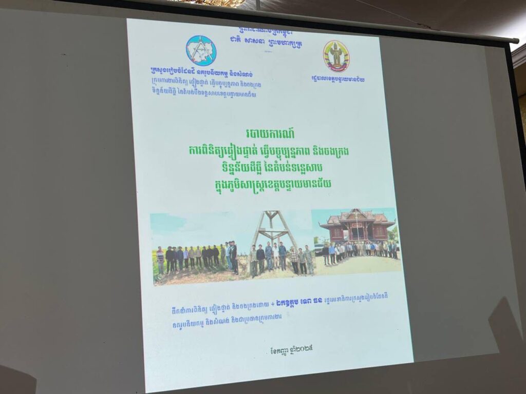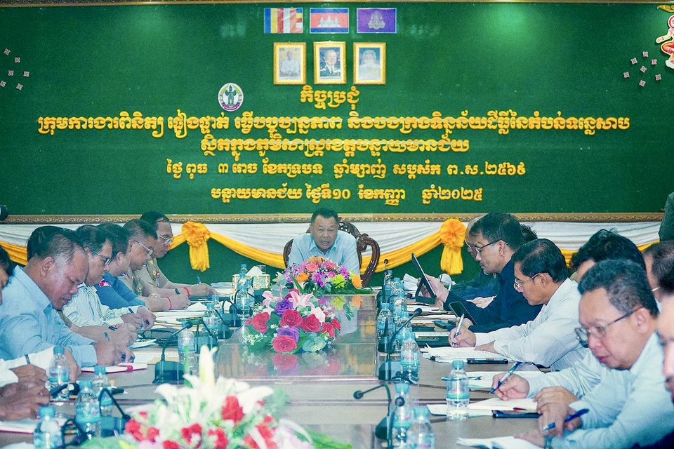 នាព្រឹកថ្ងៃពុធ ៣រោច ខែភទ្របទ ឆ្នាំម្សាញ់ សប្តស័ក ពុទ្ធសករាជ ២៥៦៩ ត្រូវនឹងថ្ងៃទី១០ ខែកញ្ញា ឆ្នាំ២០២៥ ដោយទទួលបានការអនុញ្ញាតដ៏ខ្ពង់ខ្ពស់ពី ឯកឧត្តមរដ្ឋមន្ត្រី ថោ ជេដ្ឋា ប្រធានអាជ្ញាធរទន្លេសាប ឯកឧត្តម សរ គឹមសាន្ត អគ្គលេខាធិការអាជ្ញាធរទន្លេសាប បានដឹកនាំក្រុមការងារមន្ត្រីបច្ចេកទេសអាជ្ញាធរទន្លេសាប ចូលរួមកិច្ចប្រជុំ ស្តីពីការពិនិត្យ ផ្ទៀងផ្ទាត់ ធ្វើបច្ចុប្បន្នភាព និងចងក្រងទិន្នន័យដីធ្លី នៃតំបន់ទន្លេសាប ដែលរៀបចំដោយក្រសួងរៀបចំដែនដី នគរូបនីយកម្ម និងសំណង់ ក្រោមអធិបតីភាព ឯកឧត្តម តឹករ៉េត សំរេច រដ្ឋលេខាធិការប្រចាំការ ក្រសួងរៀបចំដែនដី នគរូបនីយកម្ម និងសំណង់ និងជាប្រធានក្រុមការងារពិនិត្យ ផ្ទៀងផ្ទាត់ ធ្វើបច្ចុប្បន្នភាព និងចងក្រងទិន្នន័យដីធ្លី នៃតំបន់បឹងទន្លេសាប ដែលបានប្រព្រឹត្តិទៅនៅសាលប្រជុំរដ្ឋបាលខេត្តបន្ទាយមានជ័យ។